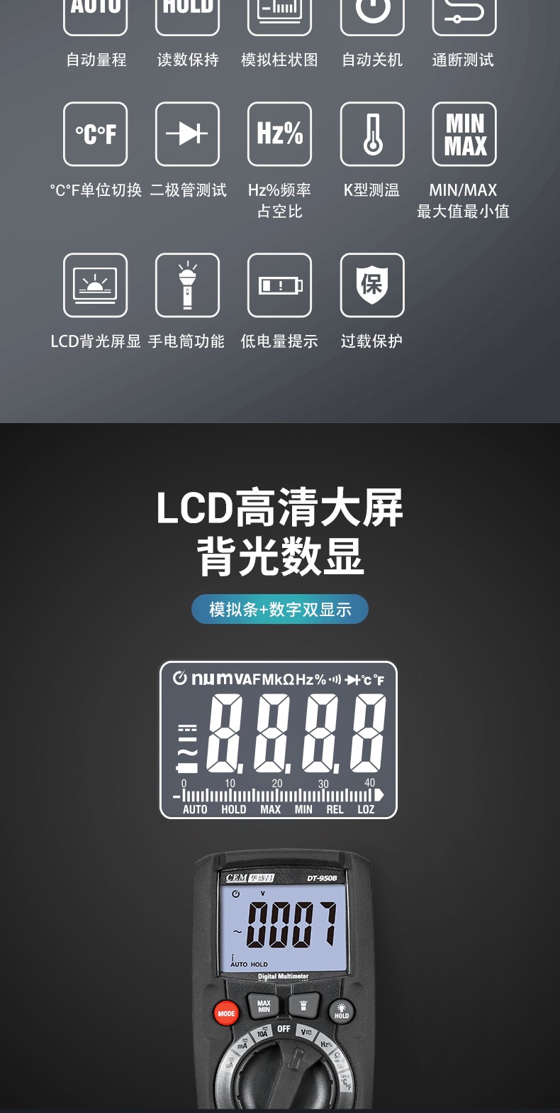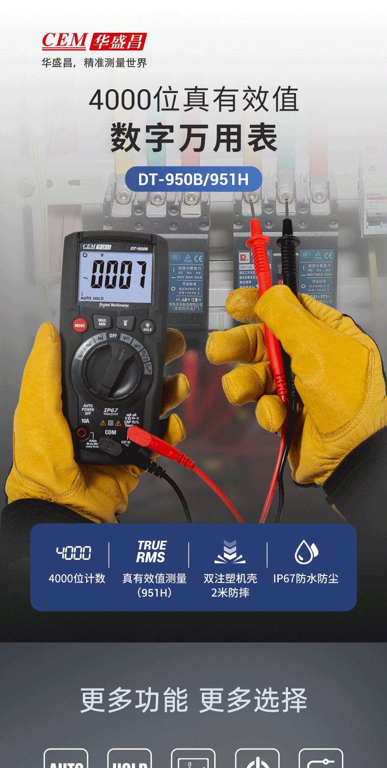 數字萬用表,一種多用途電子測量儀器,一般包含安培計、電壓表、歐姆計等功能,有時也稱為萬用計、多用計、多用電表,或三用電表。 數字萬用表適用于基本故障診斷的便攜式裝置,也有放置在工作臺的裝置,有的分辨率可以達到七、八位。 數字多用表(DMM)是在電氣測量中要用到的電子儀器。它可以有很多特殊功能,但主要功能就是對電壓、電阻和電流進行測量,數字多用表,作為現代化的多用途電子測量儀器,主要用于物理、電氣、電子等測量領域。