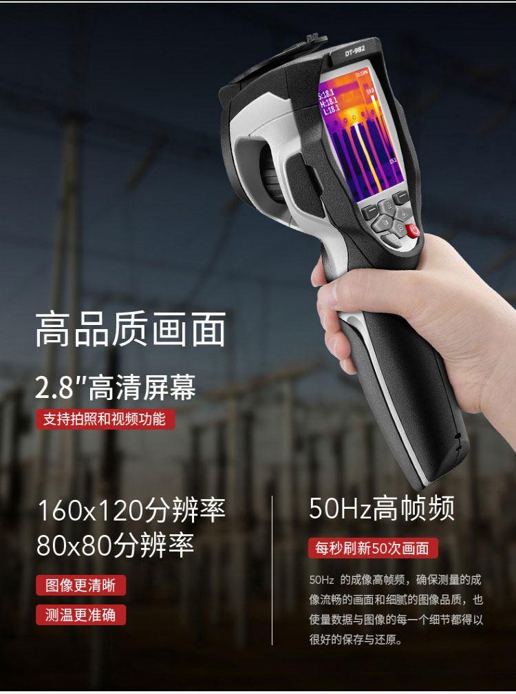 EM DT-980/982/980A/980H/982H/980L-8/982L-8系列智能互聯型紅外熱像儀,設計新穎,體積小巧、是用戶的不錯選擇,可用于電力,暖通,消防,石化等領域。