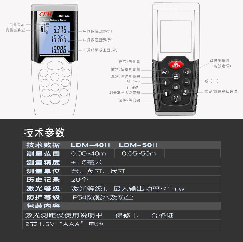 LDM-40H在CEM原有測距儀的基礎上開發的最新產品,進一步提高了產品的強光性能,精度穩定性和快速響應。