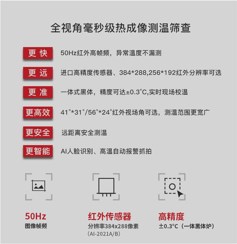 ·被測人員要求:戶外陽光照射后,或者劇烈運(yùn)動(dòng)后,需在室內(nèi)環(huán)境平靜適應(yīng)5分鐘后進(jìn)行測試;人員從戶外場景進(jìn)入室內(nèi),建議經(jīng)過回廊緩沖至少10秒鐘后,再步入檢測位置,如果室內(nèi)外溫差較大時(shí),建議在室內(nèi)停留2~3min再行檢測;確保待測人員整個(gè)面部處于設(shè)備攝像視野內(nèi),同時(shí)面部及額頭不能被遮擋(帽子、圍巾、墨鏡、面具、退燒貼等可能遮擋面部的物件,建議先提前摘下,適應(yīng)0.5-1分鐘后再進(jìn)行測試。)