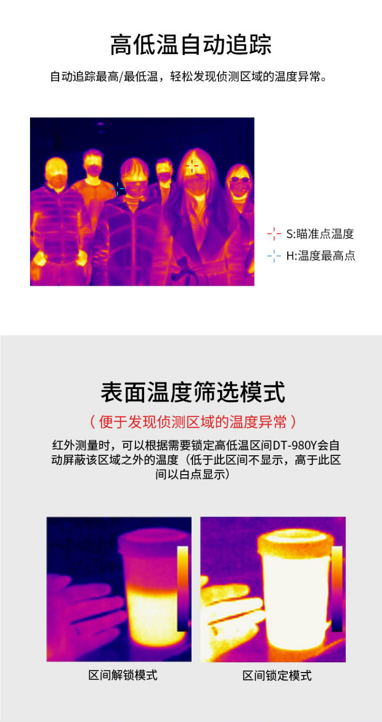 分辨率:160*120、圖像幀頻:50HZ、篩查測溫范圍:32-42℃、可外接HDMI大屏顯示