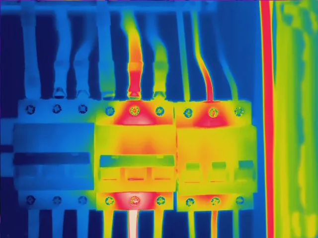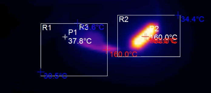 注:使用CEM紅外熱像儀能夠清楚地看到過熱點,并能自動跟蹤找尋過熱點,快速發現短路的地方。