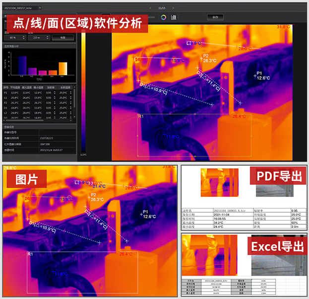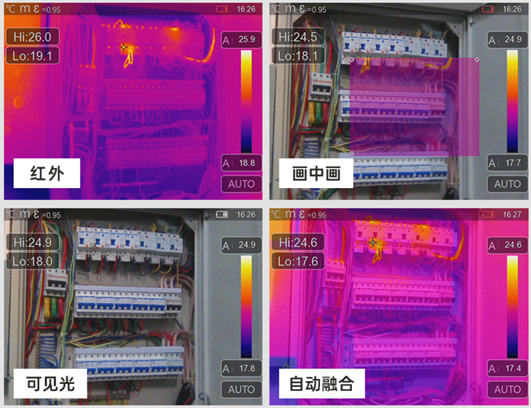 紅外圖像和可見光圖像的組合顯示,能更精準地識別溫差,讓工程師可以更好觀察接觸點長期處于高溫狀態的情況,減少工作量。因為工程師可根據可見光圖片來判斷紅外圖片中熱點的未知,并自動生成報告,減少操作時間,提高工作效率。